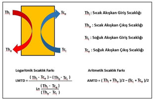 q: Isı Yükü, U: Isı transfer katsayısı, A: ısı transfer yüzey alanı, LMTD: Logaritmik sıcaklık farkı